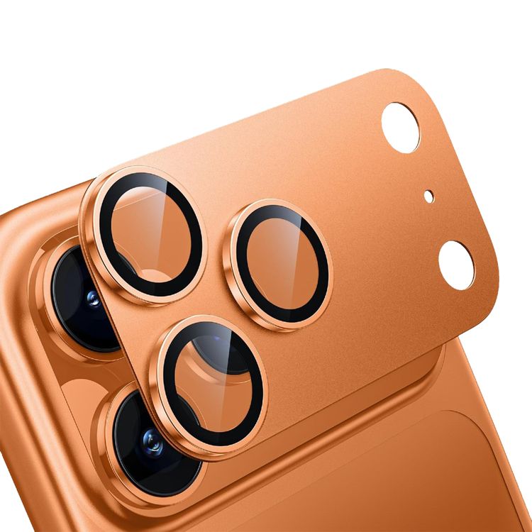 Levelo Trio Pro Max, Camera Lens Protector for iPhone 17 Pro Max, Anti-Glare Coating, Scratch Resistant, Ultra-Clear Glass, Oleophobic Coating, Double-Sided AR Glass, Detachable Camera Protector, 0.33mm Thickness - Orange