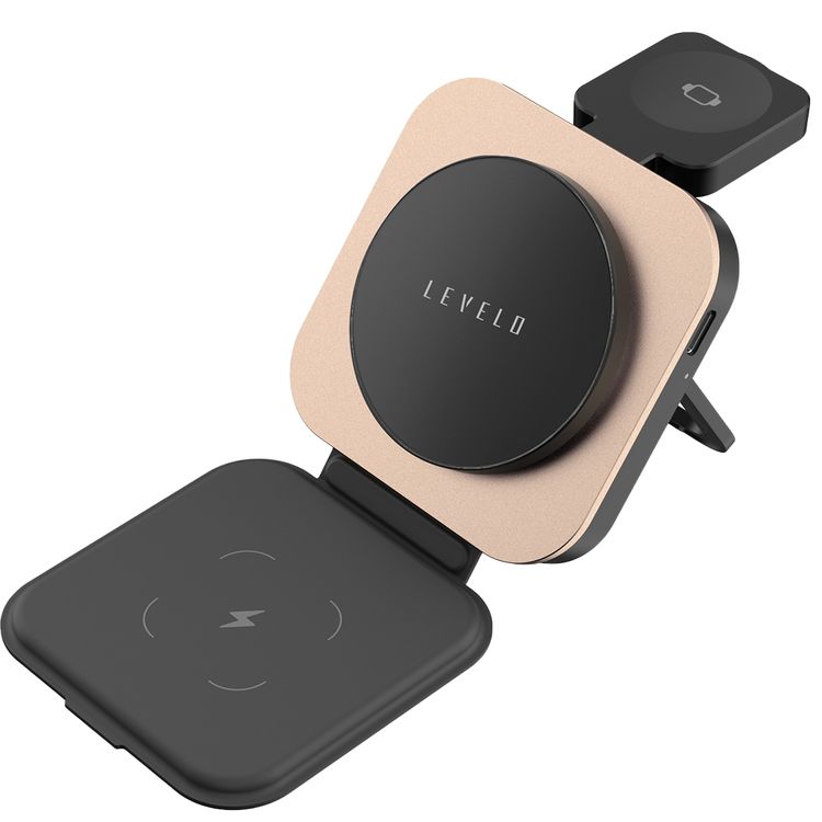 Levelo TrioFlow 3-in-1 Wireless Charger with Type-C Cable Included, Up to 15W Wireless Charging, Aluminum Alloy Finish, Simultaneous Charging, Foldable Design - Desert Titanium