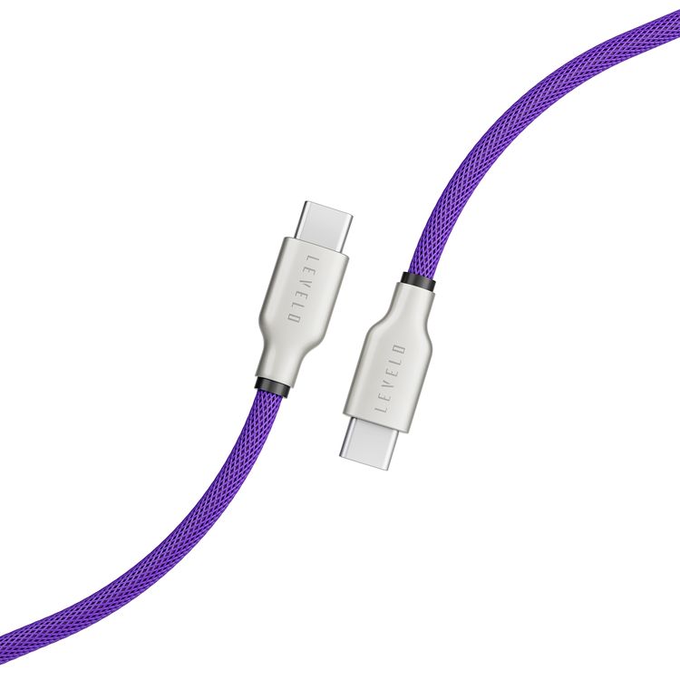 Levelo Weave Net USB-C to USB-C Cable with 100W Power Delivery, 1.1m Cable Length, 480Mbps Data Transfer Speed, 3000+ Bends Lifespan, Fast Charge, Tangle-Free Design - Dark Purple