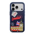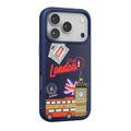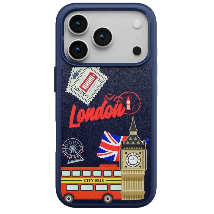 Levelo Vallo PU Leather Case for iPhone 17 Pro with Embroidery London Finish, Comfortable Hold, Durable PU Leather, Raised Bezels for Camera and Screen, True Microfiber Interior Lining, Scratch & Wear Resistant, Shock-Resistant Bumper - Cobalt Blue