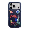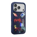 Levelo Vallo PU Leather Case for iPhone 17 Pro with Embroidery Paris Finish, Comfortable Hold, Durable PU Leather, Raised Bezels for Camera and Screen, True Microfiber Interior Lining, Scratch & Wear Resistant, Shock-Resistant Bumper - Cobalt Blue