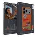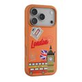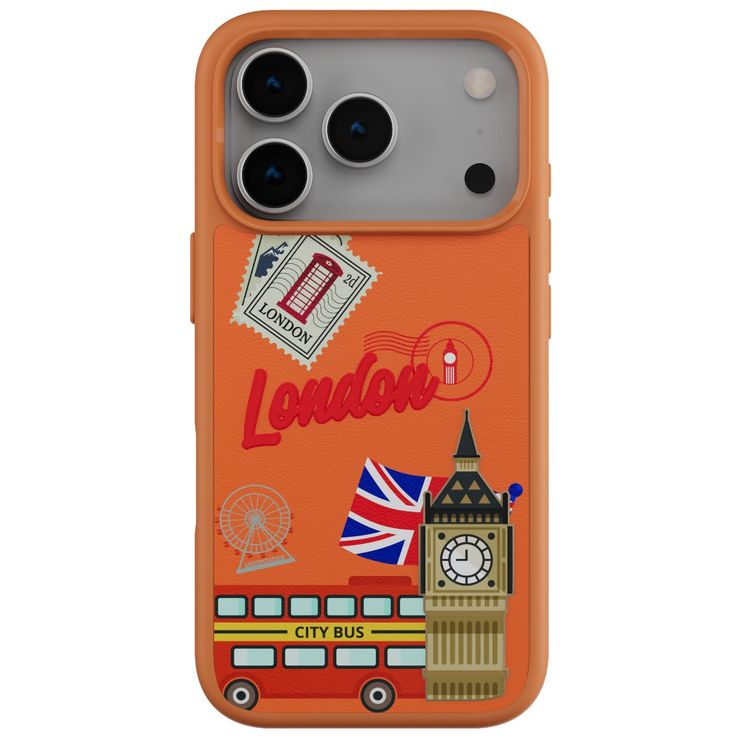 Levelo Vallo PU Leather Case for iPhone 17 Pro with Embroidery London Finish, Comfortable Hold, Durable PU Leather, Raised Bezels for Camera and Screen, True Microfiber Interior Lining, Scratch & Wear Resistant, Shock-Resistant Bumper - Sunrise Orange