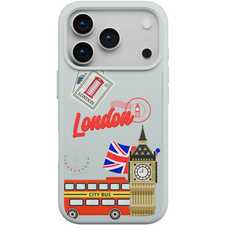 Levelo Vallo PU Leather Case for iPhone 17 Pro with Embroidery London Finish, Comfortable Hold, Durable PU Leather, Raised Bezels for Camera and Screen, True Microfiber Interior Lining, Scratch & Wear Resistant, Shock-Resistant Bumper - Brushed Silver