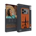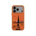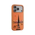 Levelo Vallo PU Leather Case for iPhone 17 Pro Max with Embroidery Dubai Finish, Comfortable Hold, Durable PU Leather, Raised Bezels for Camera and Screen, True Microfiber Interior Lining, Scratch & Wear Resistant, Shock-Resistant Bumper - Sunrise Orange
