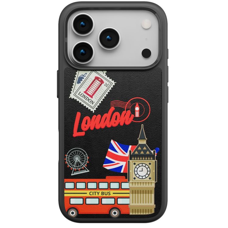 Levelo Vallo PU Leather Case for iPhone 17 Pro Max with Embroidery London Finish, Comfortable Hold, Durable PU Leather, Raised Bezels for Camera and Screen, True Microfiber Interior Lining, Scratch & Wear Resistant, Shock-Resistant Bumper - Midnight Black