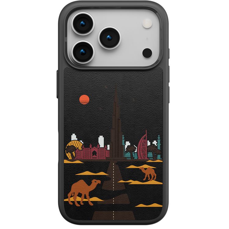 Levelo Vallo PU Leather Case for iPhone 17 Pro with Embroidery Dubai Finish, Comfortable Hold, Durable PU Leather, Raised Bezels for Camera and Screen, True Microfiber Interior Lining, Scratch & Wear Resistant, Shock-Resistant Bumper - Midnight Black