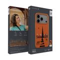 Levelo Vallo PU Leather Case for iPhone 17 Pro with Embroidery Dubai Finish, Comfortable Hold, Durable PU Leather, Raised Bezels for Camera and Screen, True Microfiber Interior Lining, Scratch & Wear Resistant, Shock-Resistant Bumper - Sunrise Orange
