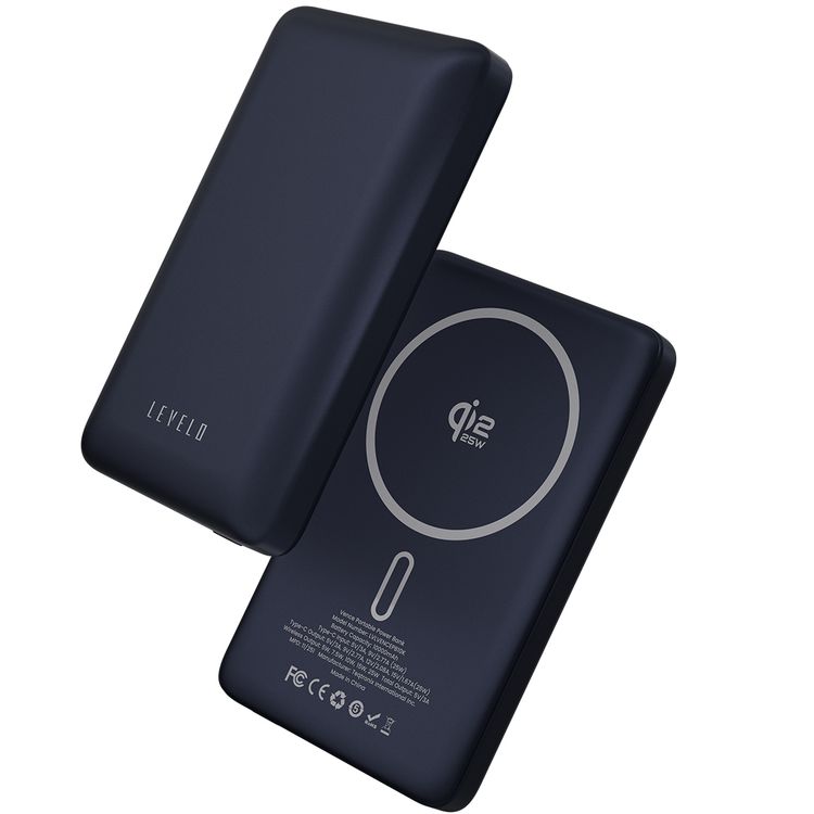The Levelo Vence 10000mAh Power Bank with Qi2.2 Technology in stylish blue color is a travel-ready companion designed to keep your devices charged wherever you go. Featuring a high-quality Li-Polymer battery with 10000mAh capacity, it delivers consistent power to your smartphone, tablet, or other compatible devices. The power bank supports 25W wireless charging for fast, convenient top-ups, while its Type-C input and output port allows efficient wired charging. Crafted from durable metal and ABS materials, it combines strength with a sleek, ultra-compact design that easily fits in your pocket or bag. Ultra-strong magnets ensure secure attachment to your devices for stable wireless charging. The included Type-C to Type-C cable makes it ready to use out of the box, supporting fast and reliable connections. With its lightweight and pocket-friendly form factor, this power bank is perfect for travel, commuting, or daily use. Whether you need a quick boost on the go or extended power throughout the day, the Levelo Vence 10000mAh Power Bank offers convenience, durability, and reliable charging performance in a compact, stylish design.