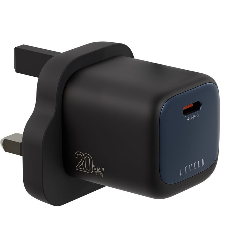 Levelo Vero 20W GaN UK Adapter with Single Type-C Port, Durable Material, Fast Charging, Over Charge Protection, UK Plug - Black / Blue