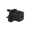 Levelo Vero GaN Double Port Adapter with PD 20W, Type-C + USB-A Ports, 20W Max Output, Fast Charging, Over Charge Protection - Black / Blue