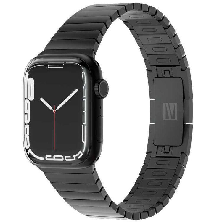 Levelo Westin Metal Watch Strap with Adjustable Links for Apple Watch 49/45mm, Hypoallergenic Material, Compatible with SE, Series 7, 6, 5, 4 & 3 - Black
