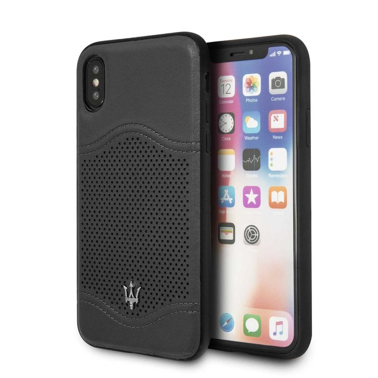 Maserati Granlusso Genuine Leather Hard Case for iPhone X - Dark Gray