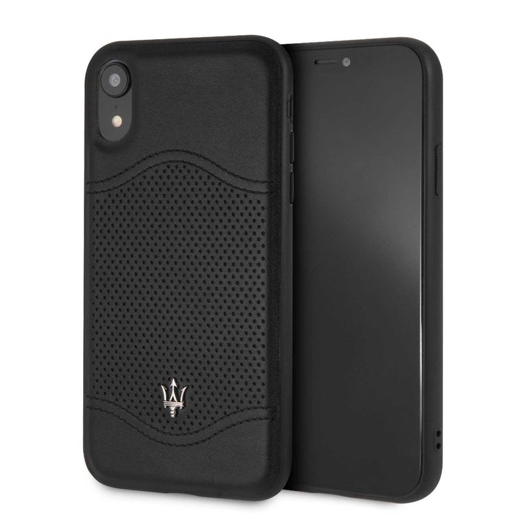 Maserati Granlusso Genuine Leather Hard Case for iPhone Xr - Black