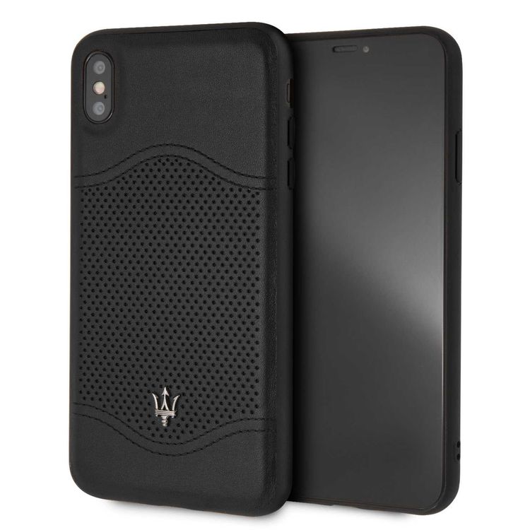 Maserati Granlusso Genuine Leather Hard Case for iPhone Xs Max - Black