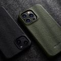 Melkco Back Snap Series Lai Chee Pattern Premium Leather Snap Cover Case for Apple iPhone 13 Pro (6.1") - (Dark Green LC)