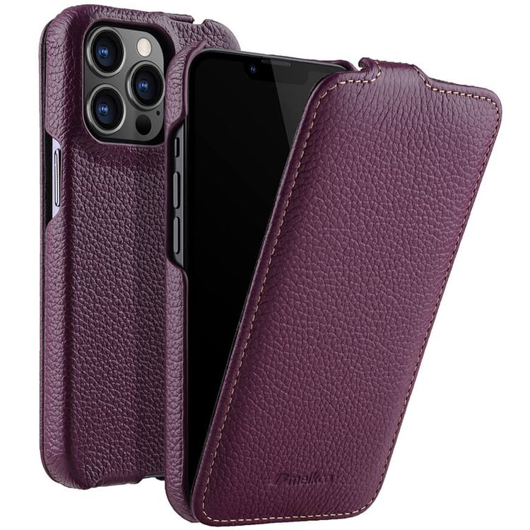 Melkco Jacka Series Lai Chee Pattern Premium Leather Cover Case for Apple iPhone 13 Pro Max (6.7") - (Purple LC)