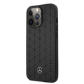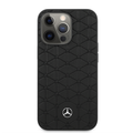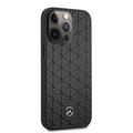 Mercedes-Benz Genuine Leather Hard Case with Quilted Mini Stars Pattern & Metal Star Logo iPhone 14 Pro Compatibility - Black