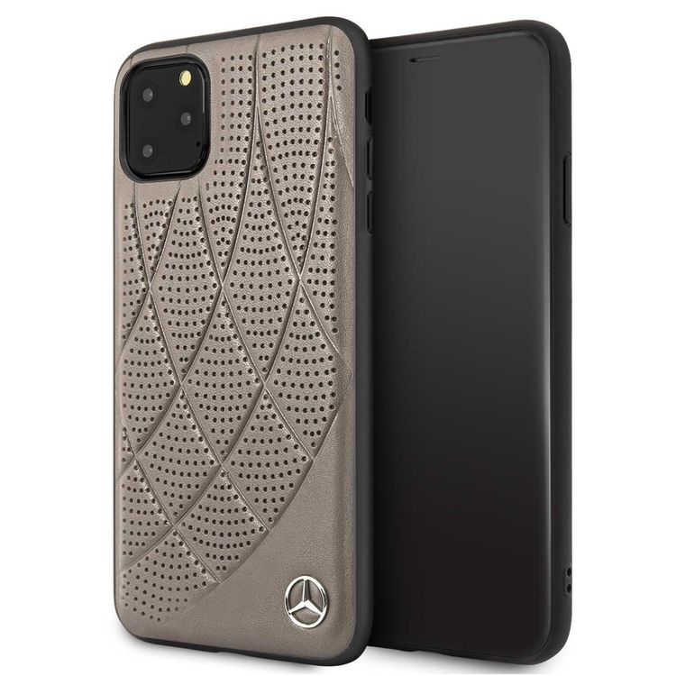 Mercedes-Benz Hard Case Quilted Perforated Genuine Leather For iPhone 11 Pro Max - Brown