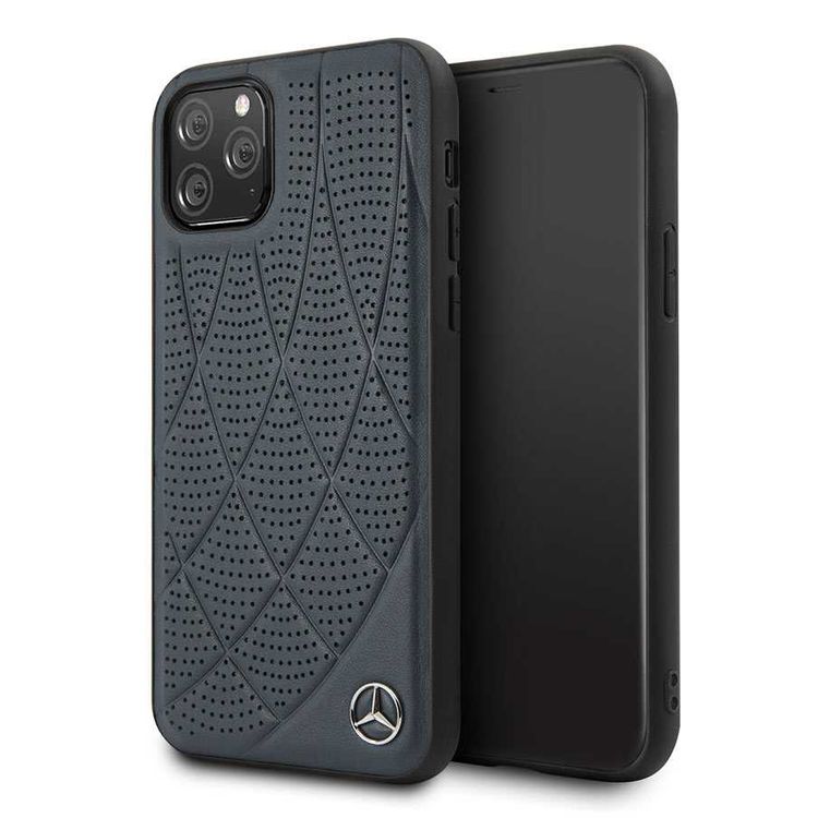Mercedes-Benz Hard Case Quilted Perforated Genuine Leather For iPhone 11 Pro - Blue