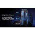 - The router comes equipped with eight high-gain external antennas that provide wider coverage and better signal strength throughout the house.