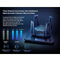 - It features a tri-band setup with a maximum throughput of up to 8,354 Mbps, making it ideal for homes with multiple users and devices.