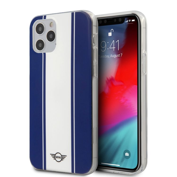 Mini Cooper PC/TPU Horizontal Stripes Hard Case for iPhone 12 Pro Max (6.7") - Navy Blue