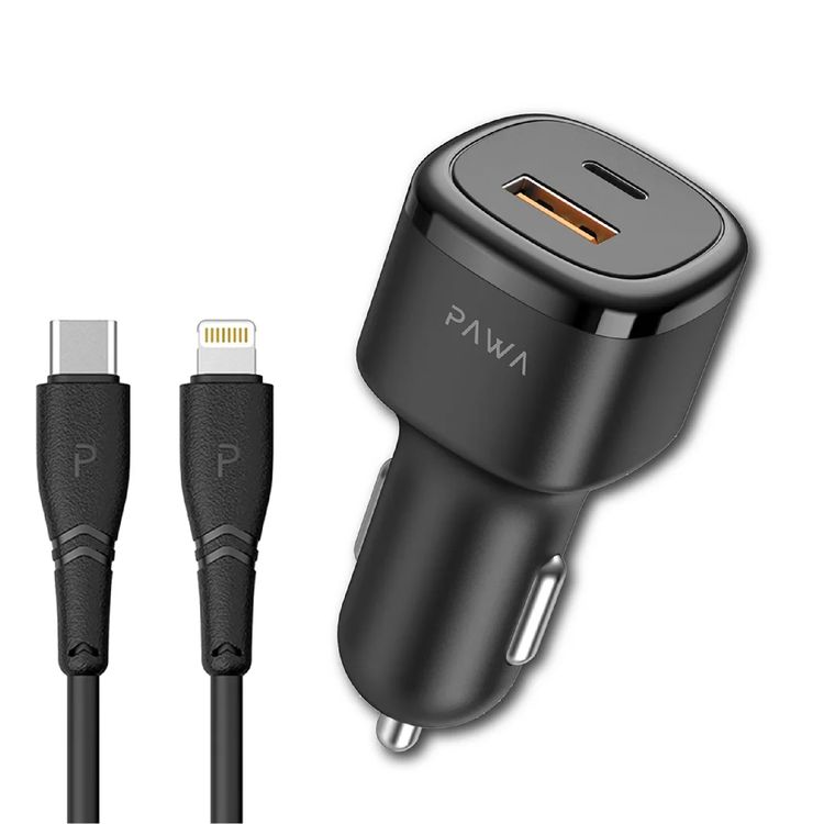 Pawa Solid Car Charger PD 48W +QC with Type-C to Lightning Cable - Black