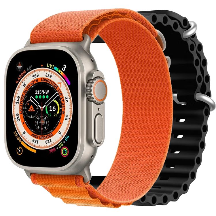 Pawa Ultra Taut Smart Watch with Dual Straps, 49mm Watch Size, Up to 5 Days Working Time, 2.2" Large Screen, Arabic Language Support, Wireless Charging - Alpine Orange & Ocean Black