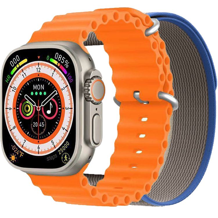 Pawa Ultra Taut Smart Watch with Dual Straps, 49mm Watch Size, Up to 5 Days Working Time, 2.2" Large Screen, Arabic Language Support, Wireless Charging - Ocean Orange & Trail Blue