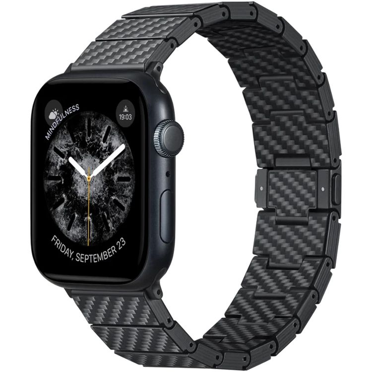 Pitaka Carbon Fiber Link Bracelet Band for Apple Watch - Modern, Lightweight, Strong and Comfortable, Customizable Sizing, All Apple Watch Series Compatible - Black Carbon