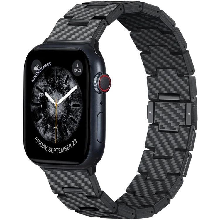 Pitaka Carbon Fiber Link Bracelet Band for Apple Watch, Retro, Lightweight, Strong and Comfortable, Customizable Sizing, Compatible with All Apple Watch Series - Black Carbon