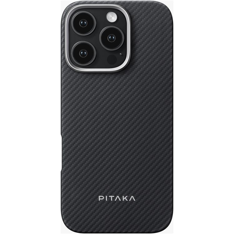 Pitaka Ultra Slim Case for iPhone 16 Pro Max, Compatible with MagSafe, 3D Grip Textured, Raised Camera Lip - Black / Gray