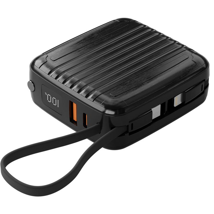 Porodo 10000mAh MagSafe Power Bank, Built in Type-C & Lightning Cables, Digital Display, 15W Wireless Output, Portable, PD 20W, QC 22W - Black