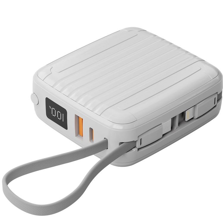 Porodo 10000mAh MagSafe Power Bank, Built in Type-C & Lightning Cables, Digital Display, 15W Wireless Output, Portable, PD 20W, QC 22W - White