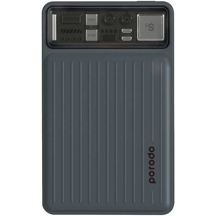 Porodo 10000mAh Power Bank with Built-in Type-C and Lightning Cables, Li-Polymer Battery, Portable, Compact, Type C input, 2 Hours Charging Time, LED Indicator - Black