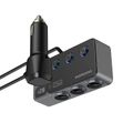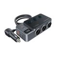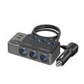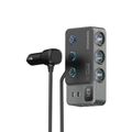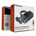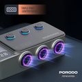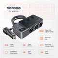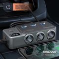 Porodo 120W Car Charger Hub with Triple-Port Lighter Sockets, 3 USB-A & 2 USB-C Ports, 35W PD, 65W QC, 95cm Cable, Real-Time Voltage Display, Independent Power Switch - Dark Gray