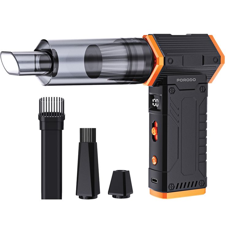 Porodo 2-in-1 Air Duster & Vacuum Cleaner with LED Display Screen, 150W Rated Power, Up to 300 Minutes Working Time, USB-C Charging Port, 8 Speed Levels, Multiple Blowing Nozzles - Black
