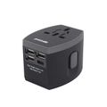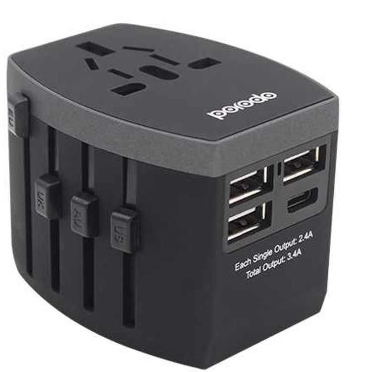Porodo 3 USB + 1 Type-C Port Universal Travel Adapter 3.4A - Worldwide All in One Universal Power Wall Charger - International Compatibility (US / EU / UK / AU Plugs) - Black