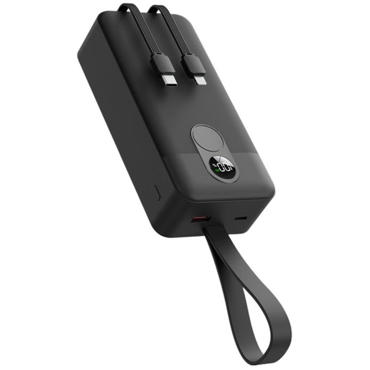 Porodo 30000mAh Power Bank with Built-in Type-C & Lightning Cables, 22.5W Power Delivery, Simultaneous Charging, 0%-60% Charge in 35 Minutes, Digital Display - Black
