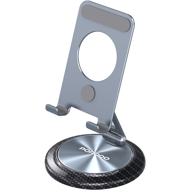 Porodo 360° Rotating Mobile & Tablet Stand with Flexible Viewing Angle, 4.7" to 12.9" Phones & Tablets Compatibility, Horizontal & Vertical Modes, Foldable Design - Gray