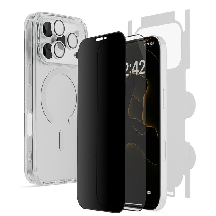 Porodo 360° Shield Series for iPhone 17 Pro Max with 5-in-1 Privacy, Protection & Crystal Clear, HD Clear Screen Protector, Privacy Screen Protector, Camera Lens Protector, MagSafe Clear Case, Back Film Protector, Drop-Tested Military Grade Protection - Clear