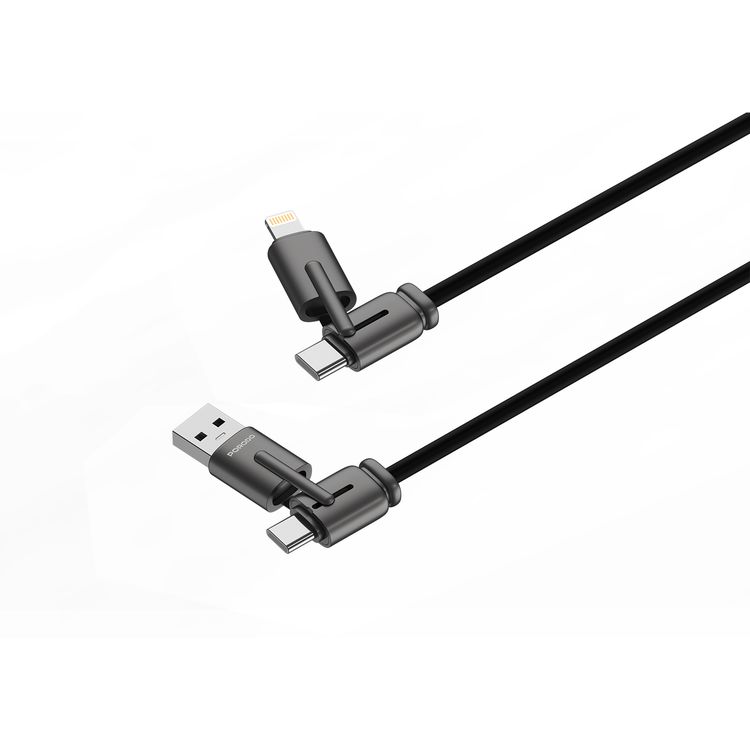 Porodo 4-in-1 Charging & Data Transfer Cable, 12W USB-A to Lightning, 15W USB-A to USB-C, 240W USB-C to USB-C, 27W USB-C to Lightning Output, Tangle-Free Design, Fast Charge - Black