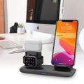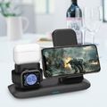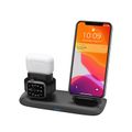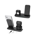 Porodo 4-in-1 Charging Station with Built-in Lightning Connector, Magnetic Charging for AirPods & Smartwatches, 10W Phone Output, 2W Watch Charger Output, Qi Standard - Black
