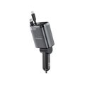 Porodo 45W Car Charger with Foldable Design, LED Voltage Display, 111W Maximum Output, Simultaneous Charging, Fast Charge Support, QC 36W, PD 45W, 80cm Type-C & Lightning Retractable Cables - Black