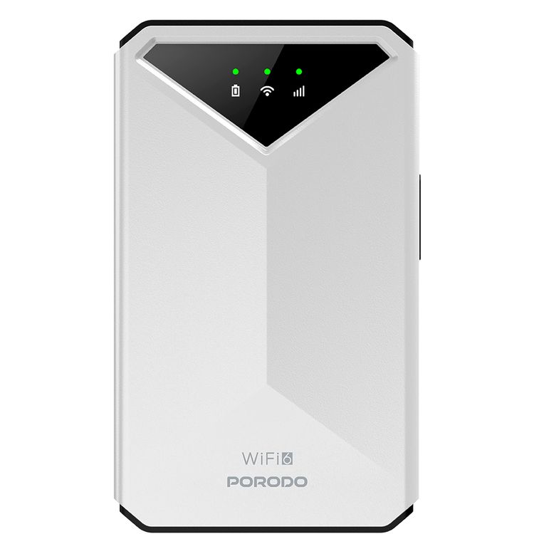 Porodo 4G LTE & WiFi 6 Pocket Router with 8 Hours Working Time, Secure Encryption, Micro & Nano Sim Capability, 2100mAh Battery Capacity, Type-C Charging Port, Lightweight - White