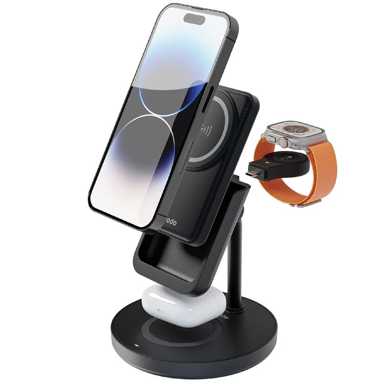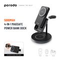 Porodo 5000mAh 4-in-1 MagSafe Power Bank Dock with 10W Wireless Charging, Simultaneous Charging, 2W Watch Output, 5W Earbuds Output, 27W USB-C Input, Detachable Power Bank - Black