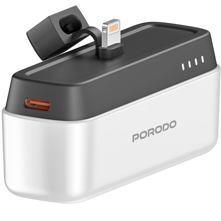 Porodo 5000mAh Power Bank with Lightning Connector, 20W Power Delivery, Small & Portable, 0% to 60% Charge in 35 Minutes, Pocket-Sized - White
