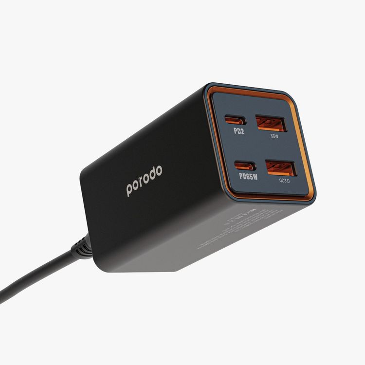 Porodo 65W GaN 4 Ports Desktop Charger Dual USB-C & USB-A Quick Charge - Black