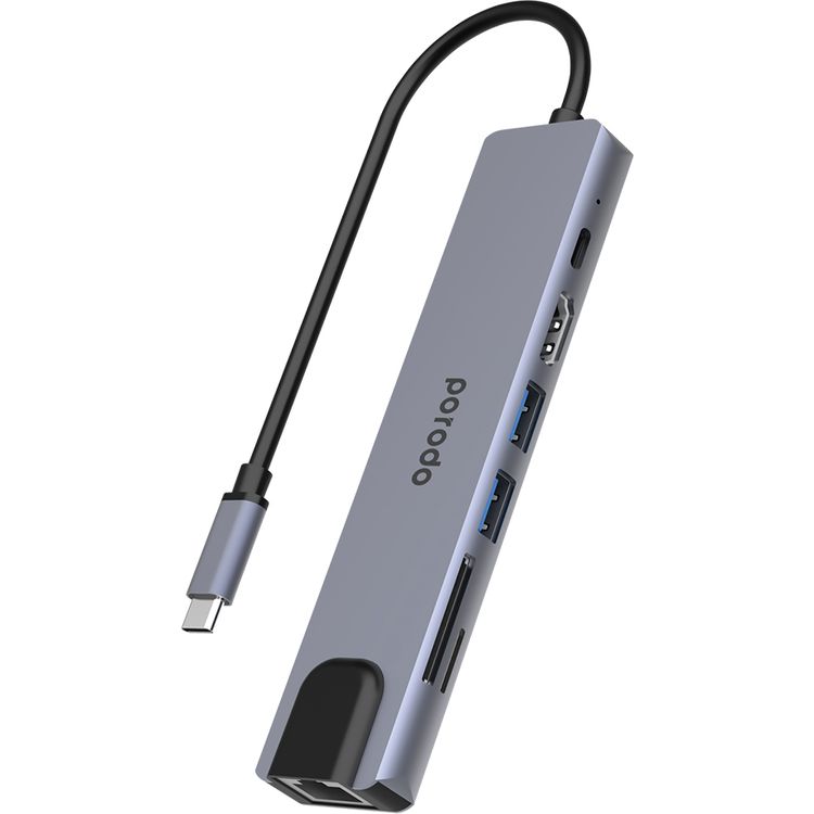 Porodo 7 in 1 Aluminum USB-C Hub 4K HDMI PD 100W - Gray