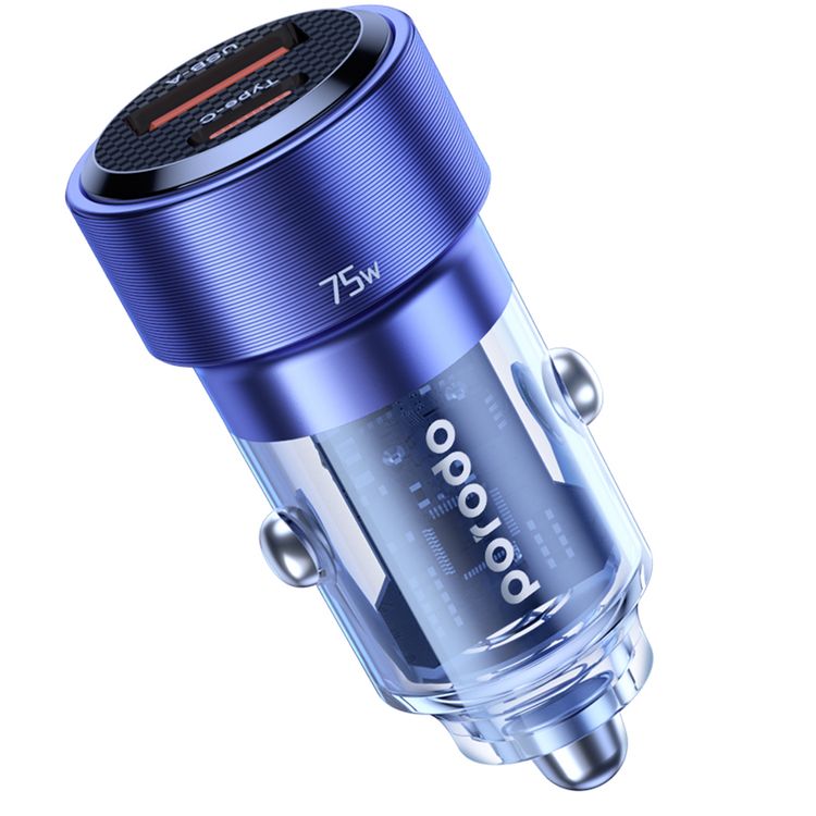 Porodo 75W Transparent Dual Port Car Charger PD 45W QC 30W - Blue